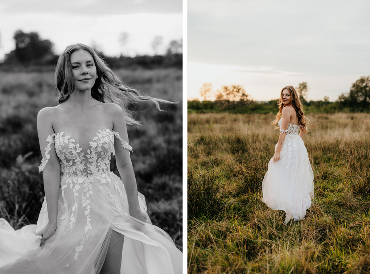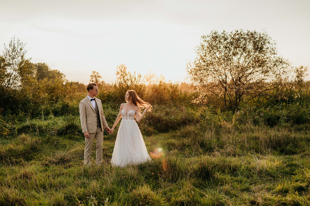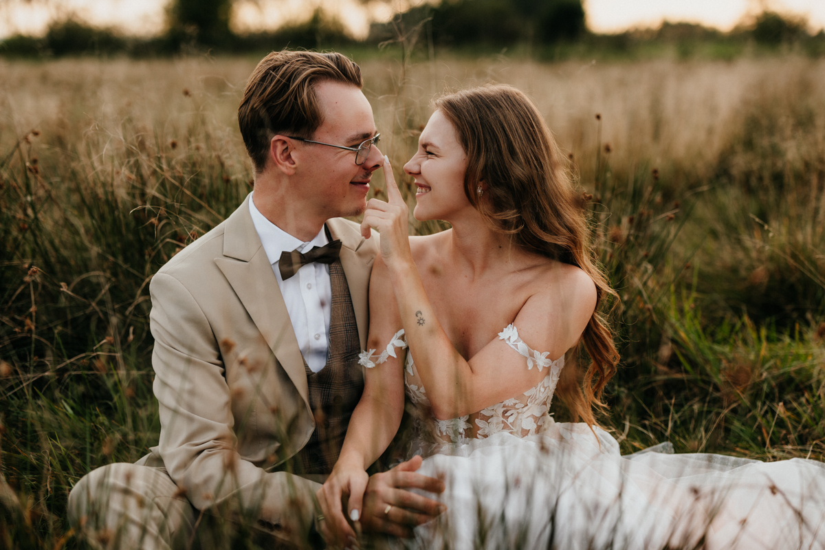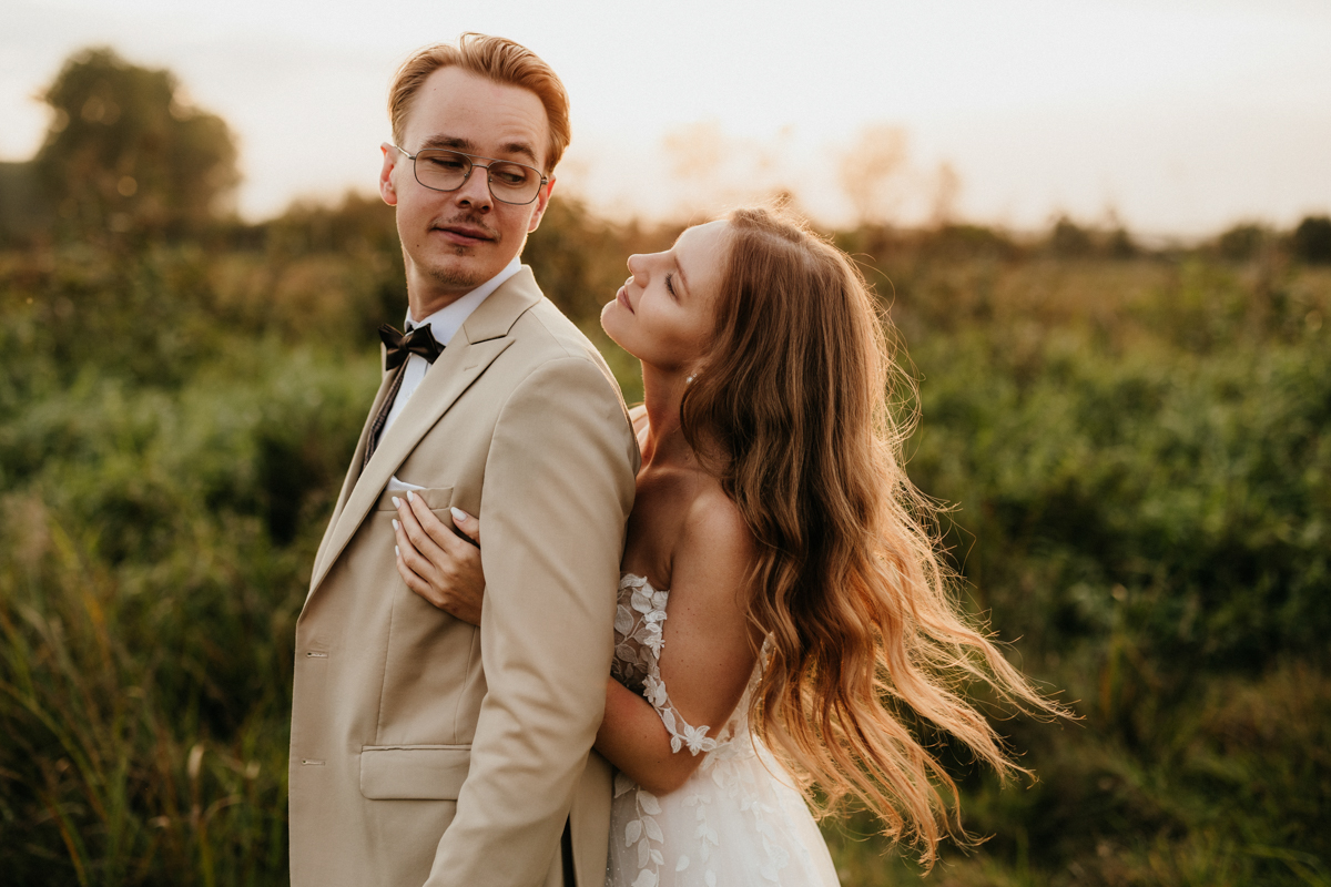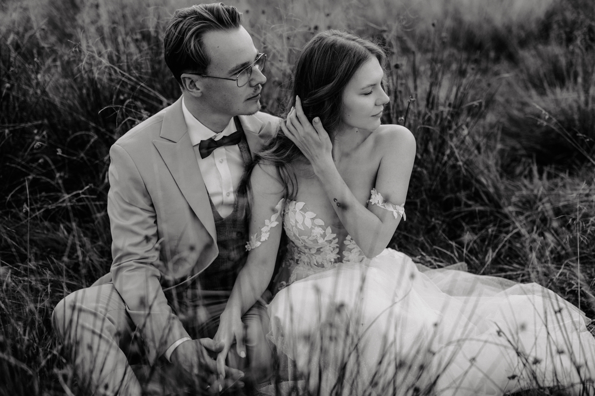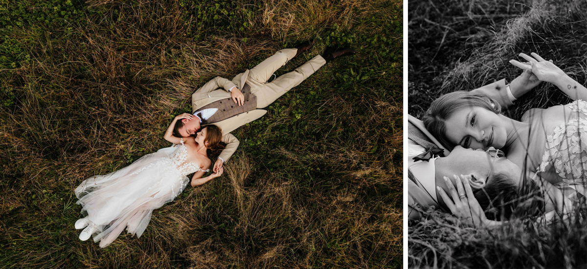 Chcielibyśmy jednak pokazać Wam, że można zrobić równie świetną sesję na zwykłej łące pod miastem. I żeby nie było, to nie była pierwsza lepsza łąka! Serio najeździliśmy się, aby znaleźć tę idealną, bo zależało nam na filmowych ujęciach z drona bez budynków w tle. Nie było łatwo, ale efekty jakie są, sami zobaczcie! Nie udało by się oczywiście bez naszej wspaniałej pary młodej, czyli Agaty i Szymona – jeszcze raz dziękujmy Wam za Wasze zaangażowanie i podążanie za naszymi szalonymi pomysłami!