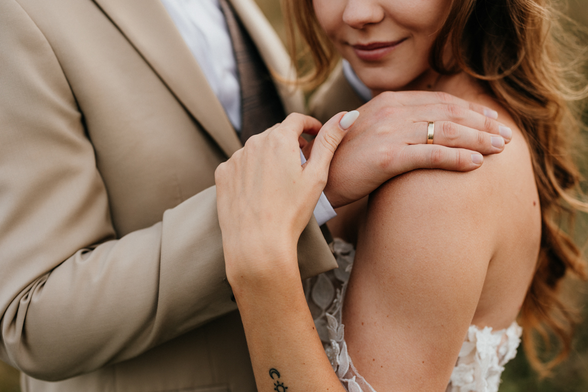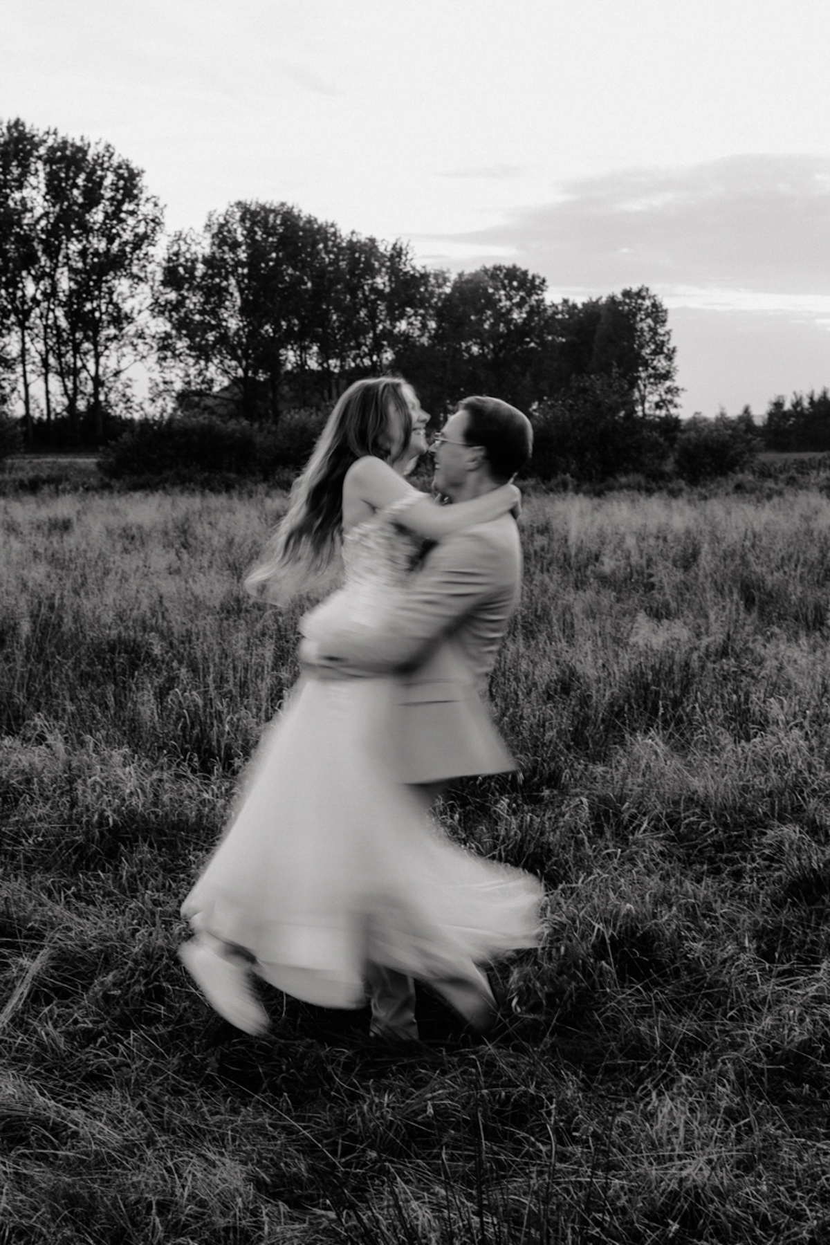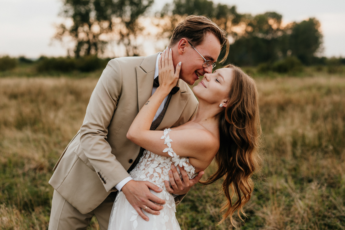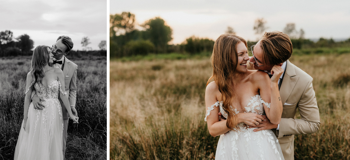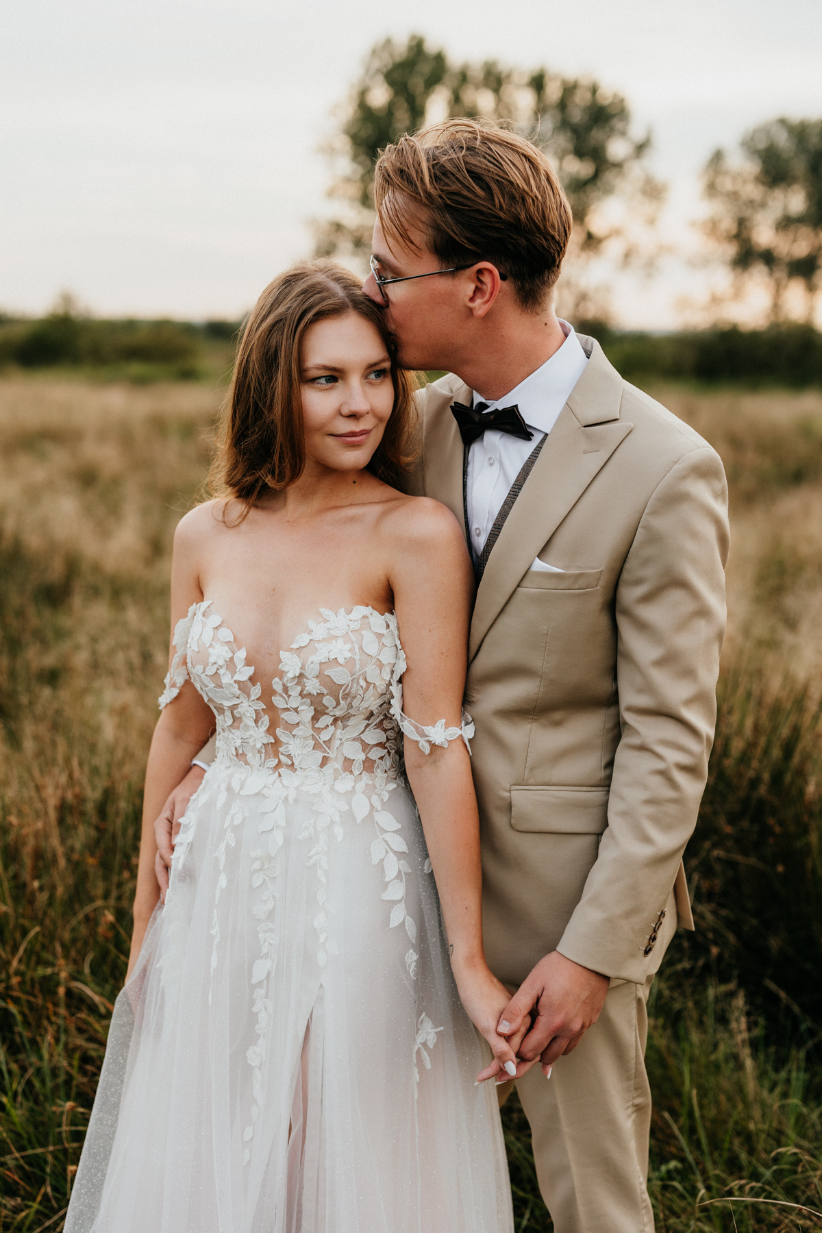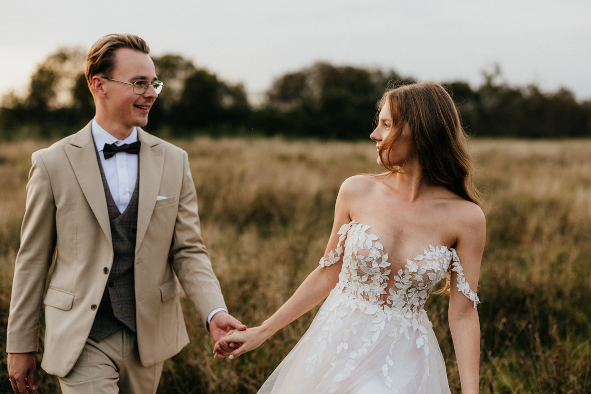 Chcielibyśmy jednak pokazać Wam, że można zrobić równie świetną sesję na zwykłej łące pod miastem. I żeby nie było, to nie była pierwsza lepsza łąka! Serio najeździliśmy się, aby znaleźć tę idealną, bo zależało nam na filmowych ujęciach z drona bez budynków w tle. Nie było łatwo, ale efekty jakie są, sami zobaczcie! Nie udało by się oczywiście bez naszej wspaniałej pary młodej, czyli Agaty i Szymona – jeszcze raz dziękujmy Wam za Wasze zaangażowanie i podążanie za naszymi szalonymi pomysłami!